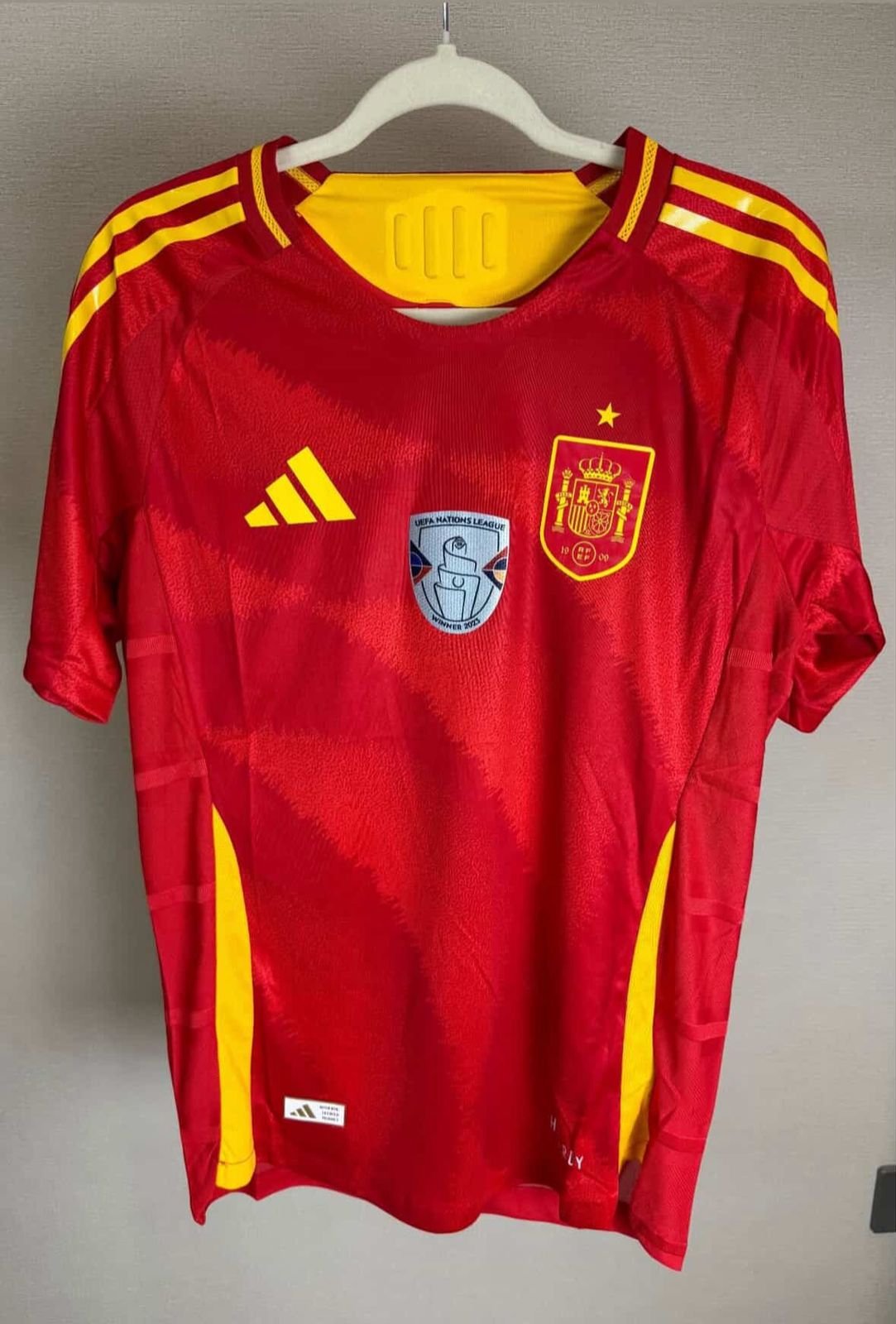 Details:Â Spain national team crest, Adidas logo, UEFA Nations League Winners 2023 patch